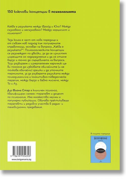 Психологическите концепции се разглеждат по двойки, за да се изчистят ширещите се недоразумения и да се стигне бързо и точно до сърцевината на въпроса. Този разбираем и изчерпателен наръчник ще ви помогне да избягвате обичайните (и не толкова обичайни) грешки и да уточните термините, за да разберете разликата между психодинамична и когнитивно-поведенческа терапия, между бързо и бавно мислене, между То и Аз.