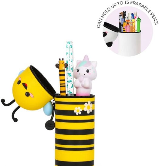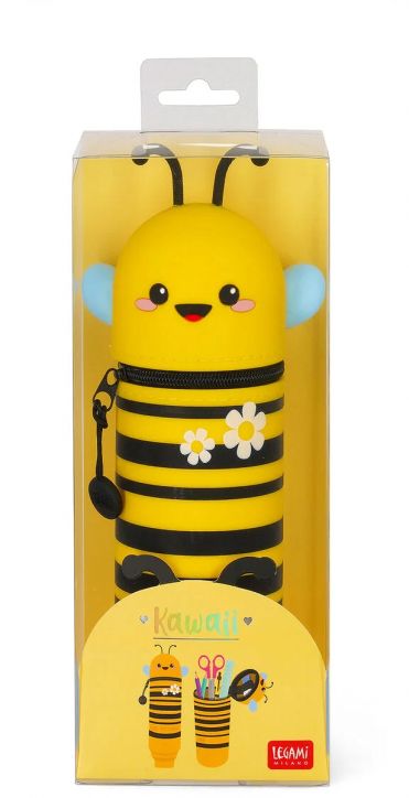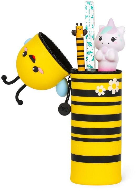 Всички супергерои имат двойна самоличност: Kawaii, мекият силиконов 2-в-1 несесер Legami Bee, може да се превърне в настолен органайзер за химикалки само като се обърне обратно!