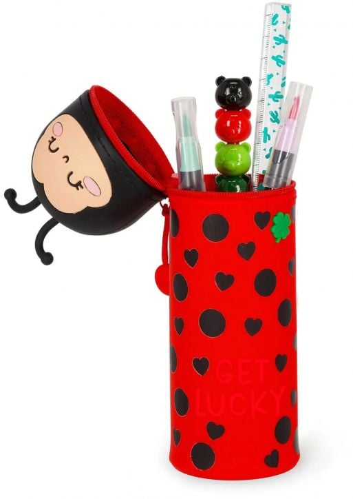 Всички супергерои имат двойна самоличност: Kawaii, мекият силиконов 2-в-1 несесер Legami Ladybug, може да се превърне в настолен органайзер за химикалки само като се обърне обратно!