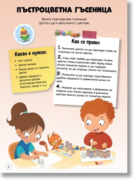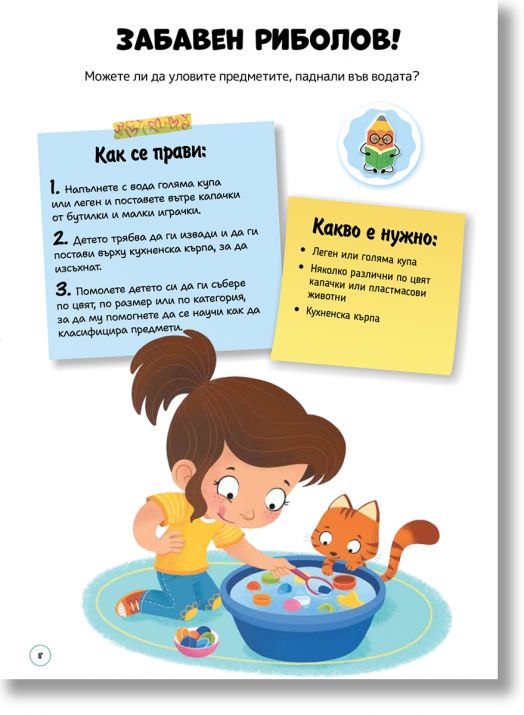 В нея ще откриете 25 интересни и лесни за изпълнение занимания, които ангажират вниманието, събуждат любопитството и подпомагат развитието на важни умения. Всяка дейност е съобразена с ежедневието и използва достъпни материали от бита, така че не е необходима специална подготовка.