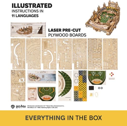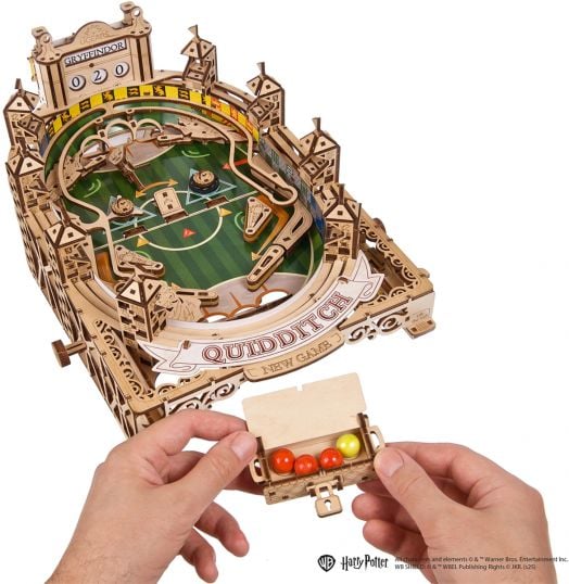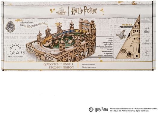 Куидич Пинбол от серията Harry Potter на Ugears е интерактивна настолна игра, вдъхновена от легендарния магьоснически спорт. Моделът пресъздава вълнуващ мач по куидич чрез класическа пинбол механика и е истинско забавление за фенове от всички възрасти.