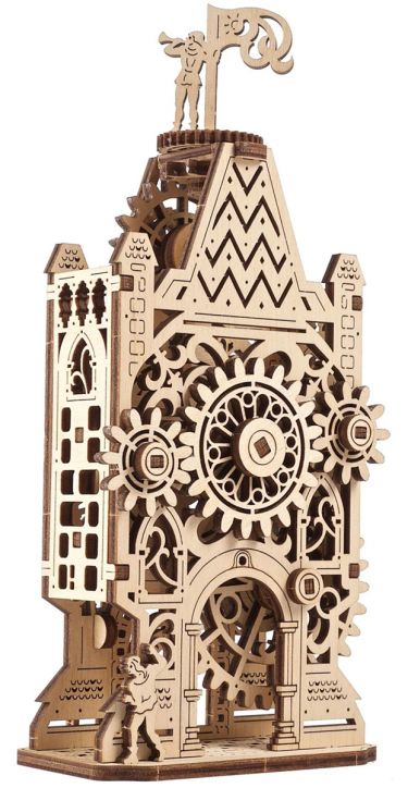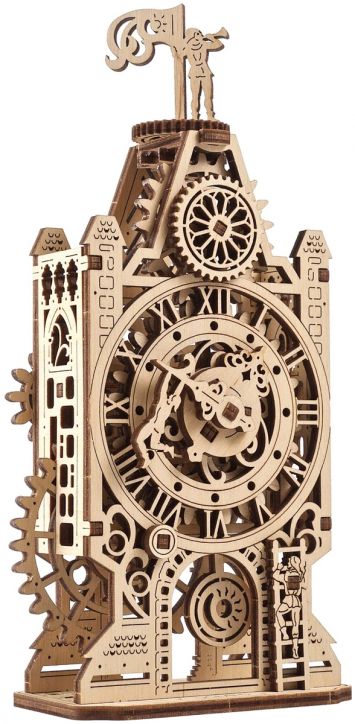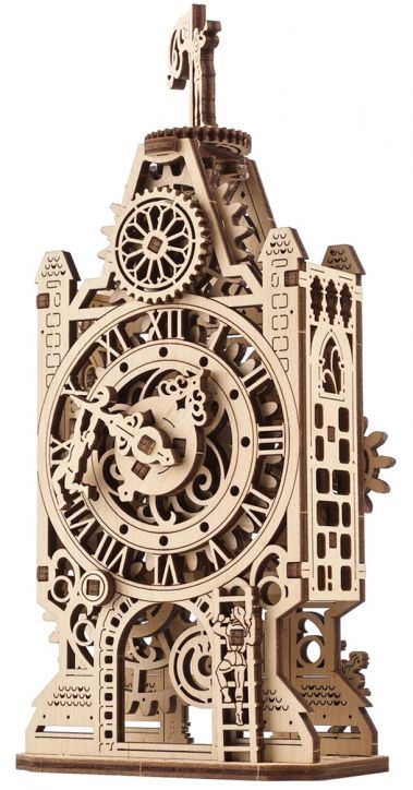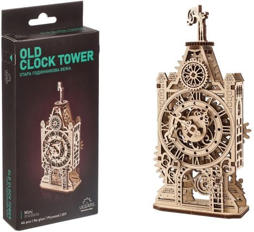 Мини моделът „Стара часовникова кула“ от Ugears пресъздава тази романтична атмосфера и я пренася във вашия дом или офис. Това е изящен дървен DIY модел за сглобяване, който представлява механична кула с часовников циферблат, движещи се зъбни колела, махало и оригинални декоративни елементи.