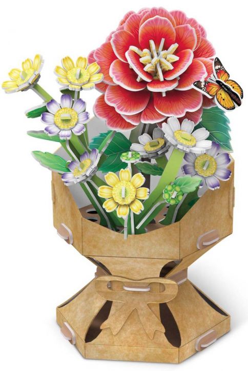 Пъзелът CubicFun 3D ви дава възможност да създадете красив и реалистичен цветен букет, който ще внесе свежест и елегантност във всеки дом. Частите са изработени от висококачествена, издръжлива картонена хартия и се сглобяват лесно без нужда от лепило, превръщайки процеса в забавно и креативно занимание.