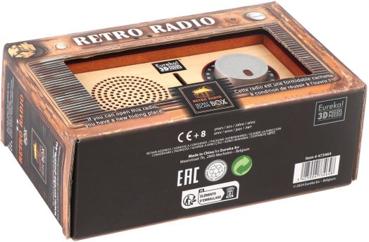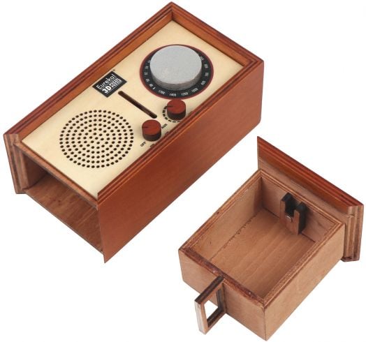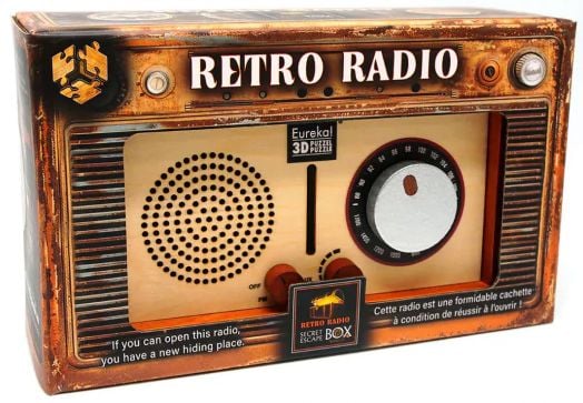 Тайната кутия за бягство „Ретро радио“ е дървена кутия-пъзел, маскирана като винтидж радио, с копчета и класически завършек. Но зад носталгичния ѝ вид се крие хитър механизъм: само като решите скрития пъзел, ще отключите тайното отделение вътре.