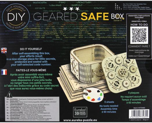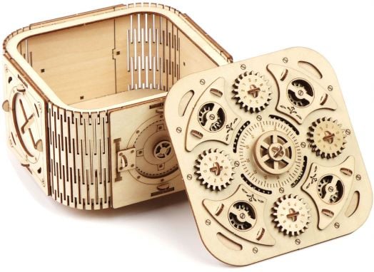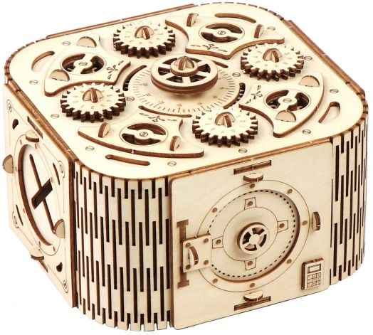 Логическият дървен 3D пъзел Eureka – Кутия за съкровища ви дава възможност сами да сглобите стилна и функционална кутия за съхранение на малки ценности, защитена с код по ваш избор. След завършване на пъзела получавате практичен мини сейф с до 10 000 възможни комбинации, който съчетава забавление, логическо предизвикателство и реална употреба.