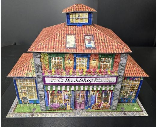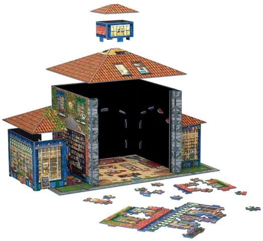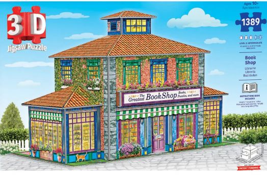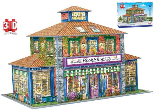 Потопете се в магическия свят на „Най-голямата книжарница“ с този впечатляващ 3D пъзел от Eurographics. Богат на живи детайли, той ви дава възможност да сглобите очарователна двуетажна книжарница с цветни тенти, стени, обвити в бръшлян, и уютни витрини.