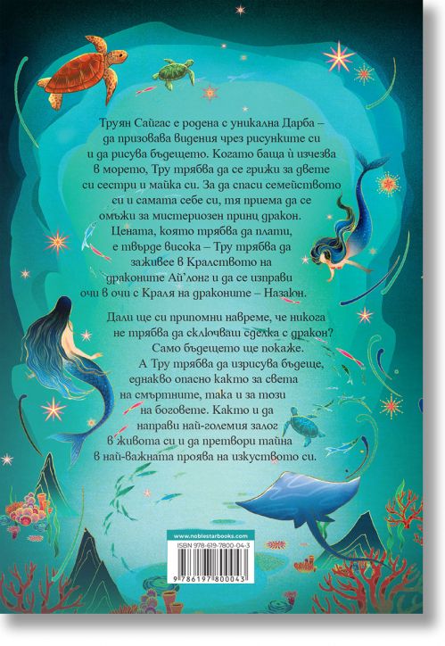 Но цената е висока. Тя трябва да заживее в неговия мрачен дворец на дъното на морето и да участва в коварен план – да проникне в обкръжението на жестокия и тираничен Крал дракон -Назаюн и да изрисува бъдеще, толкова опасно, че могло да разтърси основите както на смъртния, така и на безсмъртния свят.