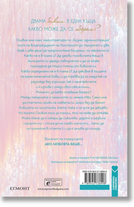 Какво не е в плана ѝ? Да загуби половината вещи в жилището си заради наводнение и да се окаже принудена да търси помощ от бившия си. Какво определено не е в плана ѝ? Да заживее в къщата на гореспоменатия бивш и да трябва да го гледа как се разхожда без горнище, как ѝ пече кексчета и я изпива с онези свои сексапилни...