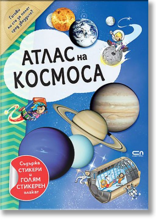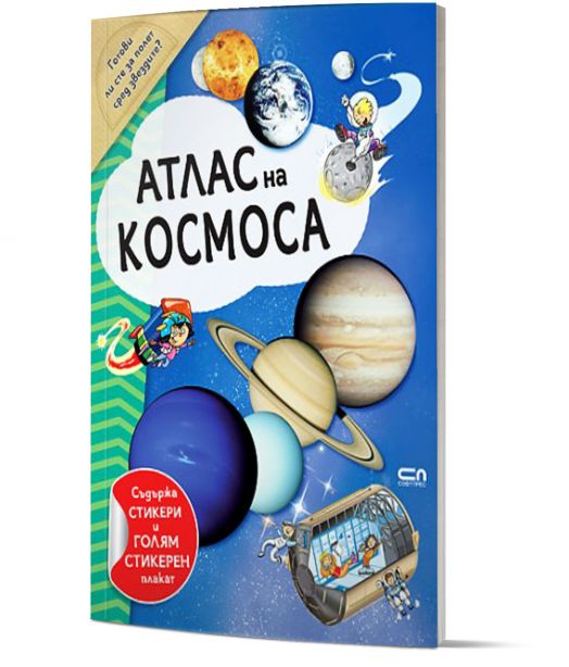 В „Атлас на Космоса“ младите изследователи ще открият любопитни факти и невероятни илюстрации за Космоса. Ще се забавляват, ще научат полезна информация за Вселената, ще лепят стикери и ще си направят голям плакат на Слънчевата система.