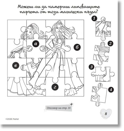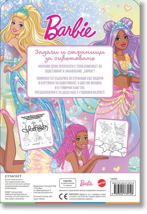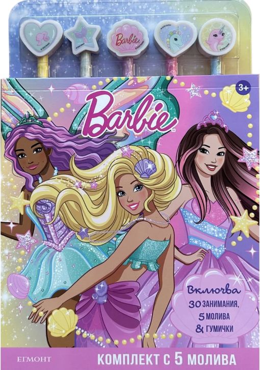 Комплектът включва 30 страници със занимателни задачи и красиви картинки за оцветяване, които развиват въображението и фината моторика на децата. В него ще откриете и 5 цветни молива, както и 5 гумички към тях – всичко необходимо за незабавно творческо вдъхновение.