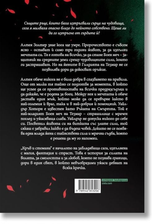 Алтея обаче никога не е била добра в спазването на правила. Още от малка тя тайно се подготвя за момента, в който ще успее да се противопостави на всички предразсъдъци и да докаже, че е родена за боец. Между нея и мечтата й обаче застава един мъж, който може да се превърне както в най-големия й враг, така и в най-добрия й помощник. Уайлдър Хоторн е известен като Ръката на Смъртта. Той е най-младият Боен меч на Тезмар – страшилище с мрачен поглед и ужасяваща слава. Уайлдър не допуска никого до себе си. Посветил живота си на битката със злите сили, той сякаш е забравил какво е да бъдеш човек. Докато не се появява една млада жена с тайнствена сила и мрачна съдба, която е решена да му го напомни.