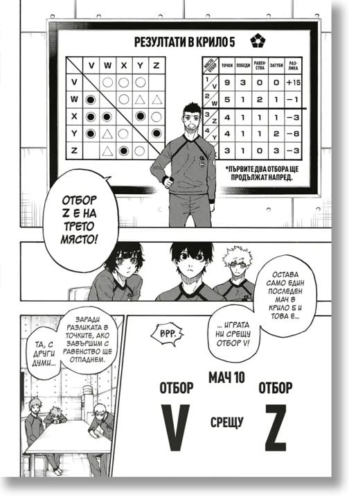 Срещу тях застава отбор V – най-силният в крило 5, воден от изключителния талант Сейширо Наги. Тяхната офанзива е безпощадна, а натискът – непрекъснат.