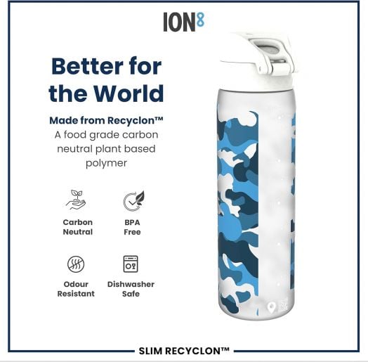 100% устойчива на течове бутилка за вода Ion8 без бисфенол А (ВРА) с плавен поток за хидратация без течове и хигиеничен капак за използване с една ръка в движение.