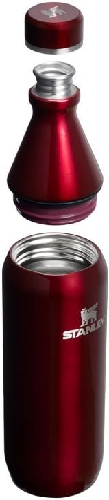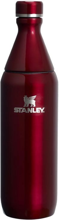 Напълно устойчива на течове термобутилка Stanley All Day Slim Garnet Shine с вместимост до 600 мл. и подходяща за хора в движение, поход в планината, но и за училище и офиса.
