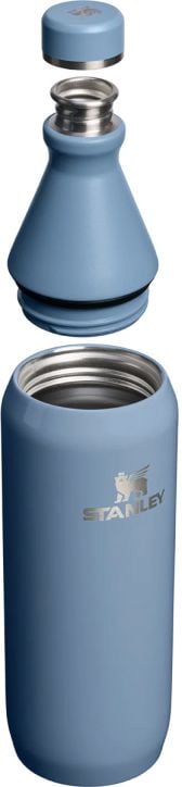 Напълно устойчива на течове термобутилка Stanley All Day Slim Indigo Gloss с вместимост до 600 мл. и подходяща за хора в движение, поход в планината, но и за училище и офиса.
