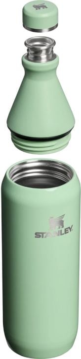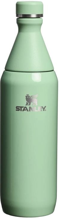 Напълно устойчива на течове термобутилка Stanley All Day Slim Pistachio Gloss с вместимост до 600 мл. и подходяща за хора в движение, поход в планината, но и за училище и офиса.