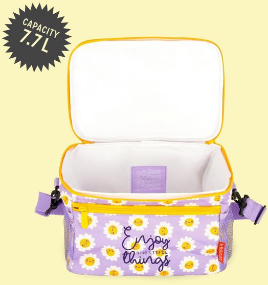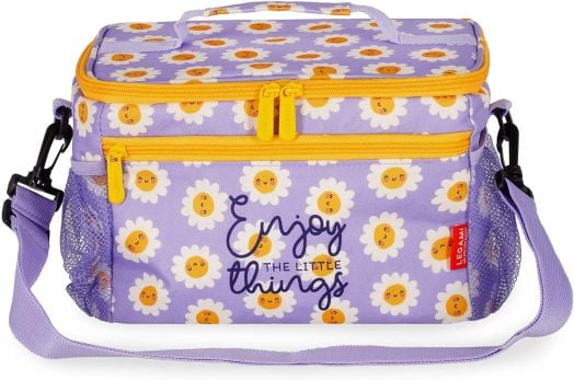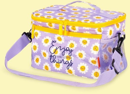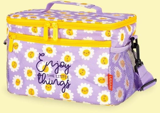 Казват, че по чантата можеш да разбереш много за един човек. Съгласни сме — особено когато става дума за Lunch Bag – Daisy от Legami. Първо, тя е доказателство за добър вкус: както към елегантните аксесоари, така и към хубавата храна. Освен това показва грижа за околната среда, благодарение на външната материя, изцяло изработена от рециклирани материали. И накрая — сигурен знак за щедрост: толкова просторна термо чанта със сигурност крие вкусни неща за споделяне в офиса или на пикник!