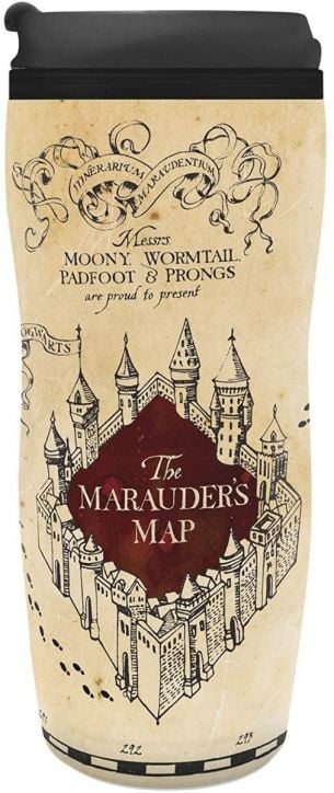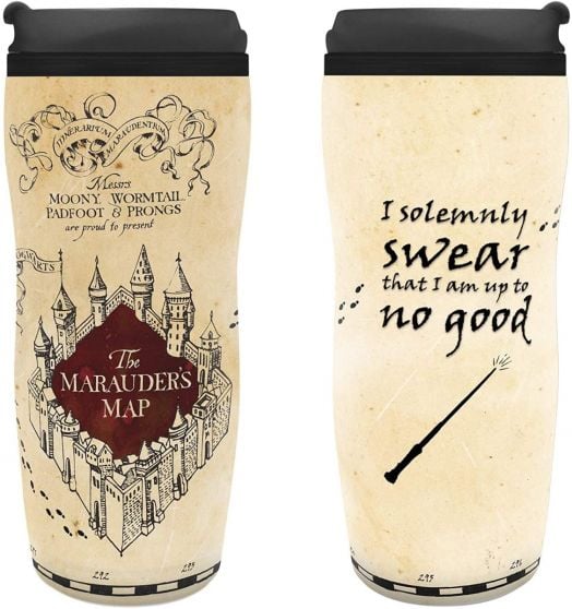 Върху чашата е изобразена прочутата Хитроумна карта, подарена на Хари от близнаците Фред и Джордж Уизли – символ на приключения и магия.