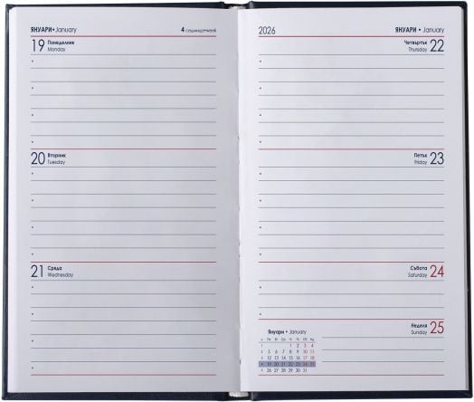 Този джобен тефтер-органайзер е идеалният спътник за динамичното ежедневие. С компактния си размер лесно се побира в чанта, раница или дори в джоб, а удобното разпределение с един ден на страница ви позволява да планирате задачите си ясно и подредено.