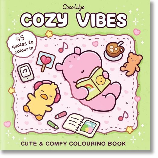 Cozy Vibes has sweet and irresistible images combined with heartfelt and inspirational quotes, for colouring fans of all ages, and also includes: