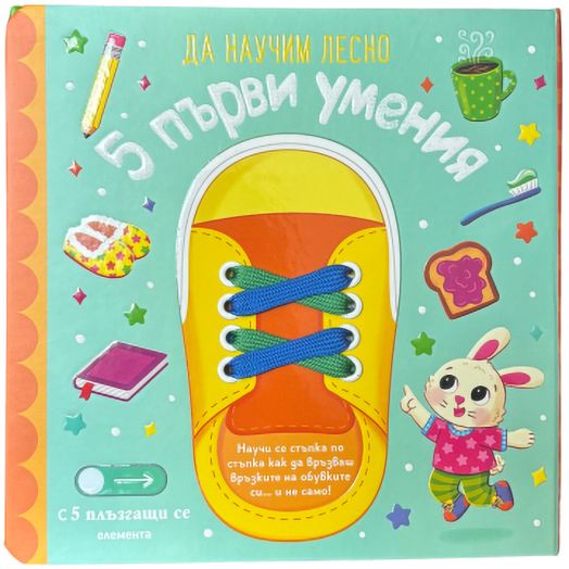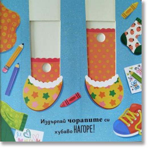 Вътре ще откриеш модел на обувка, на който да се упражняваш, и още 5 подвижни елемента, които ще ти помогнат да се приготвиш съвсем сам за игра навън!