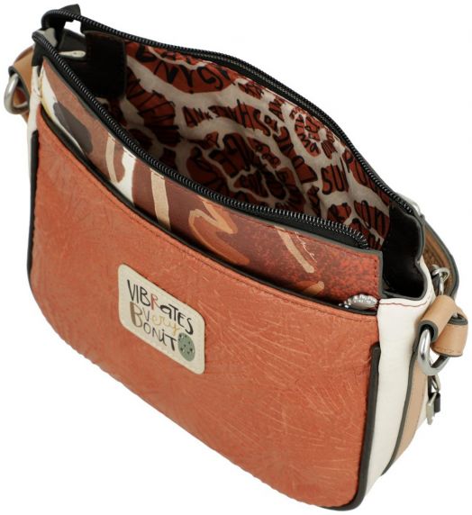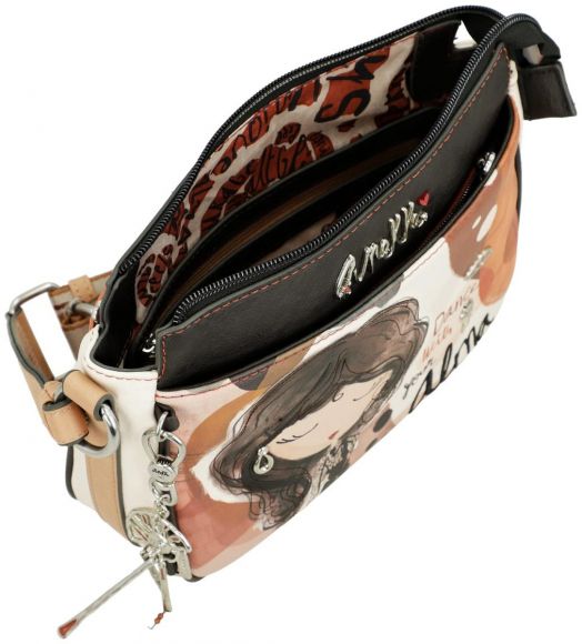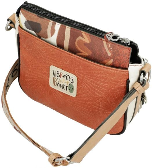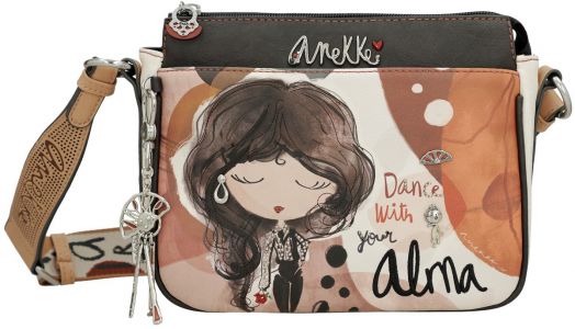 Голяма чанта за през рамо Anekke с едно отделение, затварящо се с цип, с голям вътрешен капацитет, с подплата и джобове. Моделът има два външни джоба отпред и един джоб на гърба, които осигуряват бърз достъп до най-необходимото. Презрамката е регулируема, така че винаги можете да я адаптирате към дължината, която предпочитате.