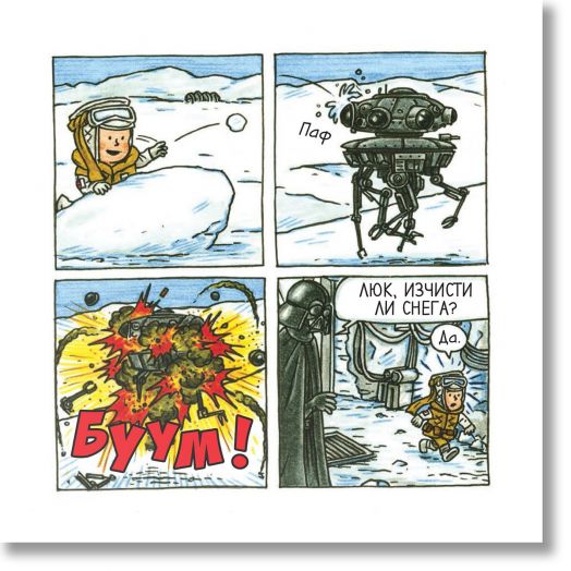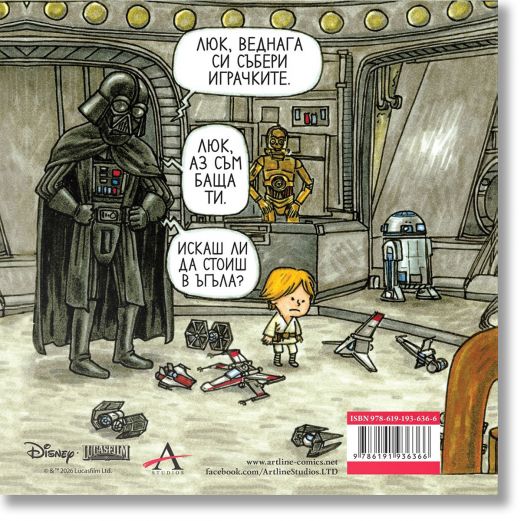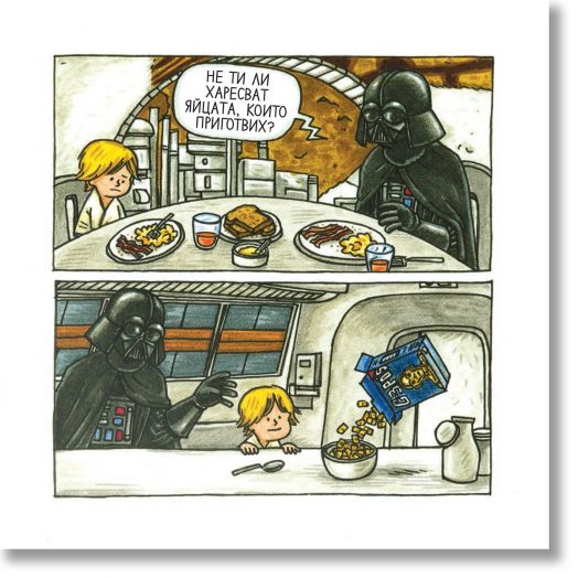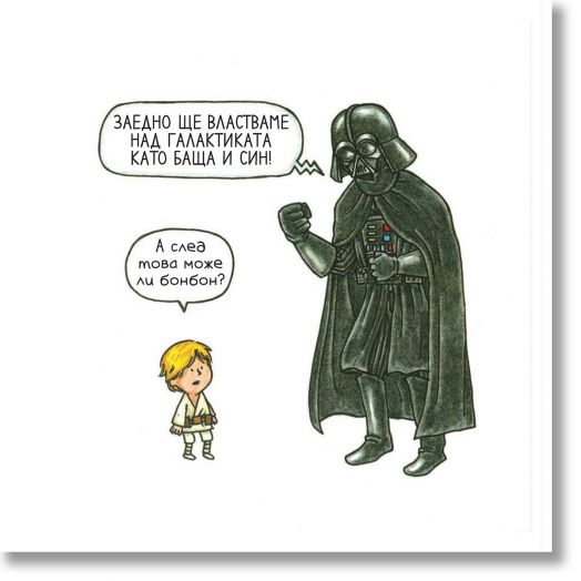 В тази забавна комиксова интерпретация Дарт Вейдър е баща като всеки друг… с малката подробност, че е тъмният ситски лорд. Житейските уроци за сина му включват тренировки със светлинен меч и овладяване на Силата (която Люк използва, за да свали буркан с бисквити), както и съвсем обикновени неща като каране на колело. Сценаристът и илюстратор Джефри Браун превръща класически моменти от филмовата сага в забавни сцени от ежедневието, представяйки с топлина и чувство за хумор радостите и изпитанията на бащинството в една далечна галактика.