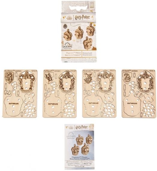 В комплекта ще откриете четири дървени фигурки за самостоятелно сглобяване, всяка със семпли механични елементи: