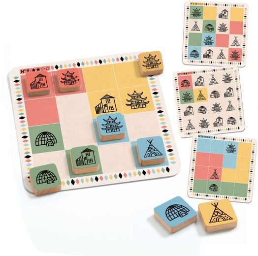 Играта е с 4 нива на трудност, като разполагате с 16 дървени части, които да бъдат правилно поставени, спрямо дадените инструкции от картите.
