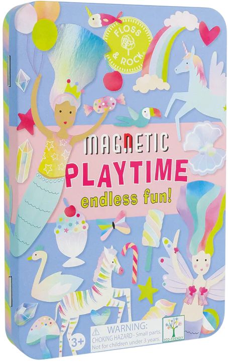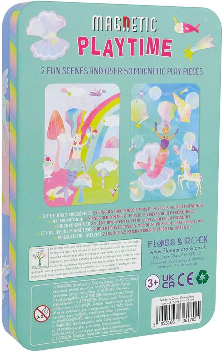 Часове забавление навсякъде с този удобен магнитен комплект Floss & Rock Fantasy за игра, включващ 3 листа с изрязани магнити и над 50 ярки и забавни магнитни елемента, които можете да поставяте върху 2 весели сцени в кутията.