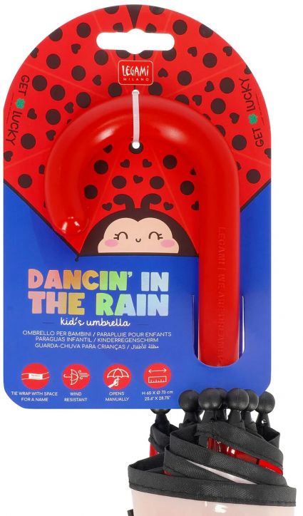 Ако времето е лошо, защо не го подобрите? Просто погледнете на света през детския чадър на Legami Dancin' in the Rain Ladybug - прозрачен и цветен, той превръща всеки дъждовен ден в идеалния начин да разпръснете радост наоколо.