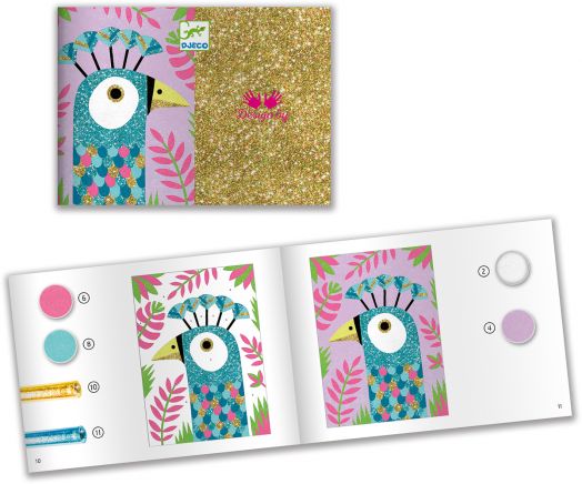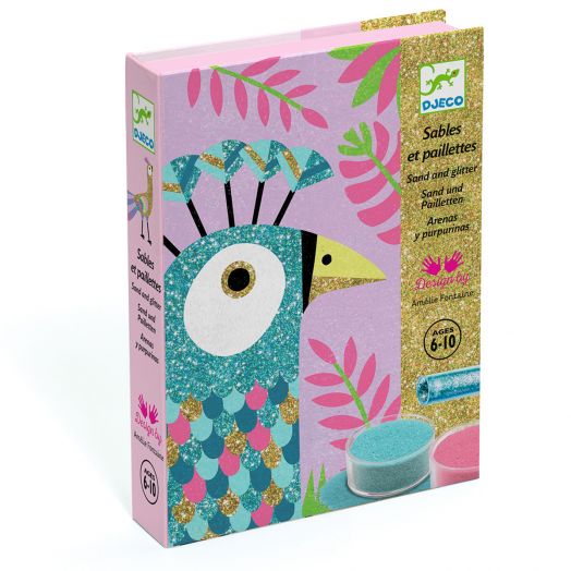 Специалистите от "Djeco" ни представят различен начин за създаване на красиви картини - оцветяване чрез цветен пясък. Точно така! Творческият комплект "Блестящи пауни" ще помогне на детето Ви да развие сръчността си, като накрая то ще остане впечатлено от красивите, блестящи картини, които е създало.