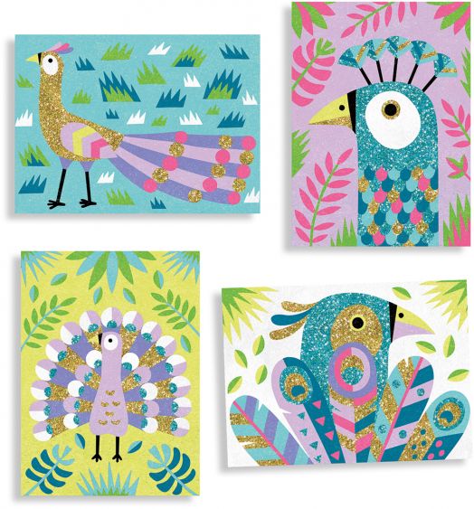 Ето, че това е начинът за направата на красиви "Блестящи пауни". Ако се усъмните в правилното използване на творческия комплект, винаги може да погледнете отново включената в комплекта книжка с подробни инструкции. А в случай, че оцветяването с цветен пясък се превърне в любимо занимание на Вашето дете, може да разгледате подобни творчески комплекти.