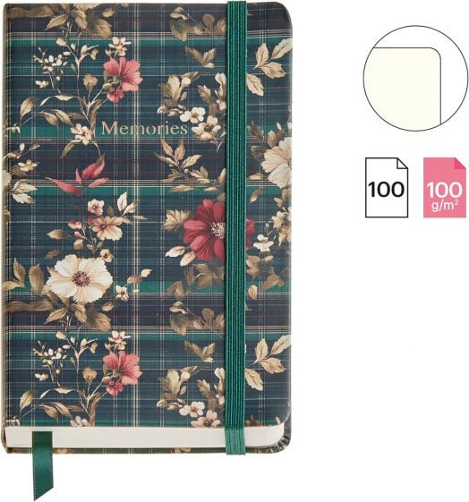 Дизайнът е функционален – с вътрешен джоб, ластик за затваряне и текстилна сатенирана лента-отметка - за отбелязване и бързо намиране на вашите бележки.
