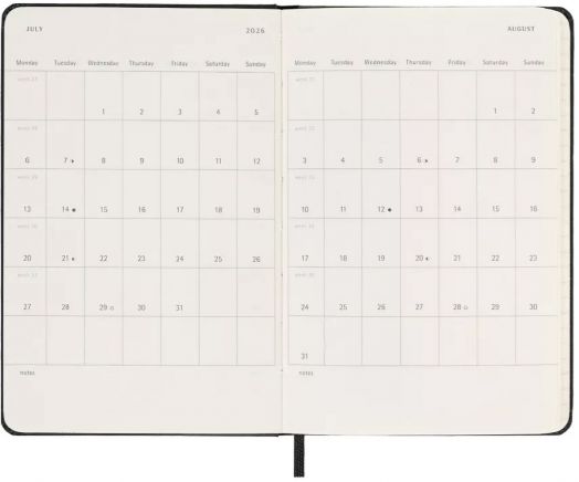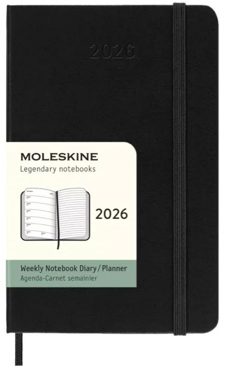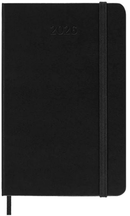 Джобен черен седмичен тефтер - органайзер Moleskine Black за 2026 година с твърди корици.