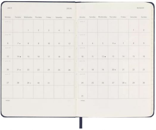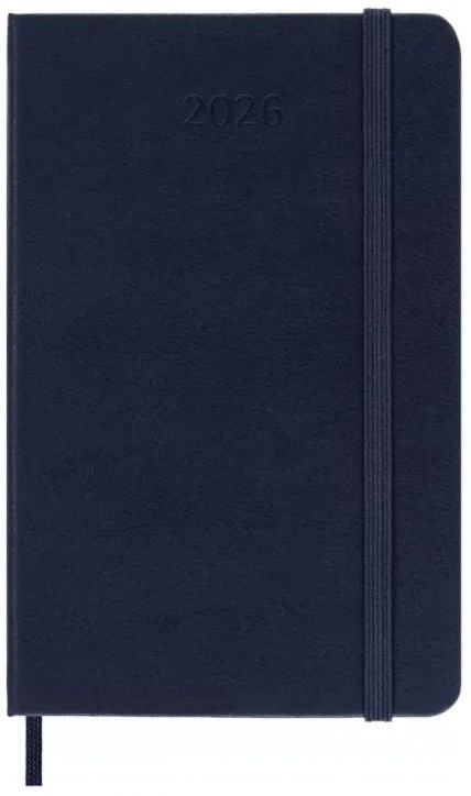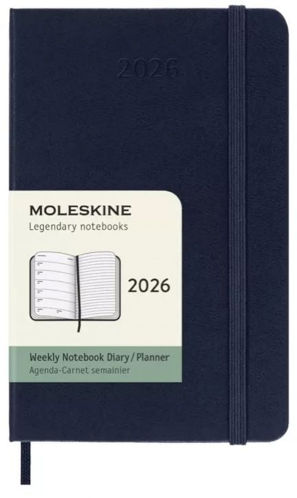 Джобен син седмичен тефтер - органайзер Moleskine Sapphire Blue за 2026 година с твърди корици.