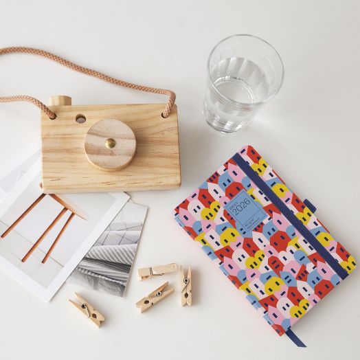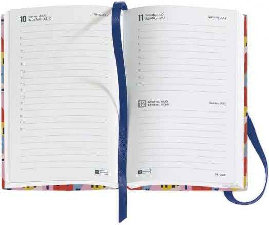 Джобен бележник - органайзер Miquelrius Grafica Houses за 2026 година с твърди корици и годишно планиране — един ден на страница (събота и неделя делят една страница).
