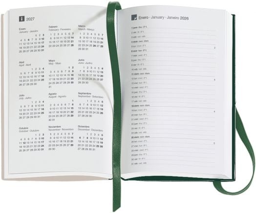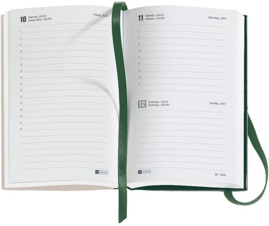 Джобен бележник - органайзер Miquelrius Grafica Color Block за 2026 година с твърди корици и годишно планиране — един ден на страница (събота и неделя делят една страница).