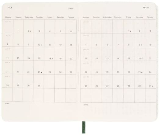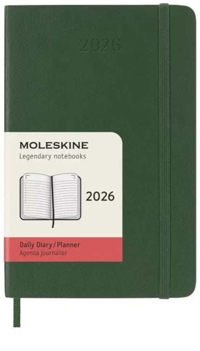 Джобен черен ежедневен тефтер - органайзер Moleskine Myrtle Green за 2026 година с меки корици в удобен формат 9 х 14 см.