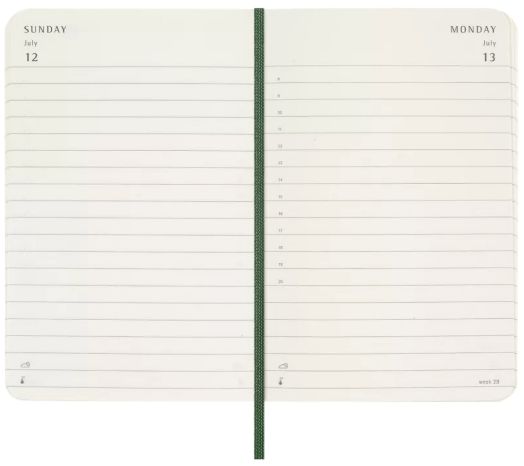 Всеки ден от седмицата е на отделна страница, а събота и неделя - на една страница.