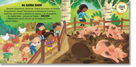 Добре дошли във фермата – място, изпълнено с живот, звуци и любопитни открития! Тази очарователна детска книжка кани най-малките читатели на разходка сред най-интересните кътчета на фермата, където ще се запознаят с различни животни и ще преживеят истинско сетивно приключение.