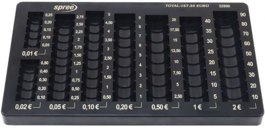 Идеален за ежедневна работа – бързо и лесно сортиране и достъп до монетите, с осем самостоятелни отделения, подходящи за номинали: 1¢, 2¢, 5¢, 10¢, 20¢, 50¢, 1€, 2€