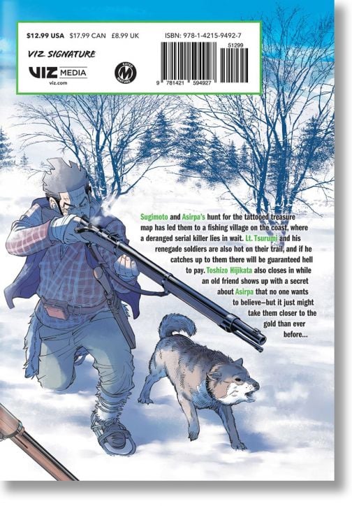 Sugimoto and Asirpa’s hunt for the tattooed treasure map has led them to a fishing village on the coast, where a deranged serial killer lies in wait. Lieutenant Tsurumi and his renegade soldiers are also hot on their trail, and if he catches up to them it’s guaranteed that there will be hell to pay. Toshizo Hijikata also closes in, while an old friend shows up with a secret about Asirpa that no one wants to believe—but it just might take them closer to the gold than ever before…