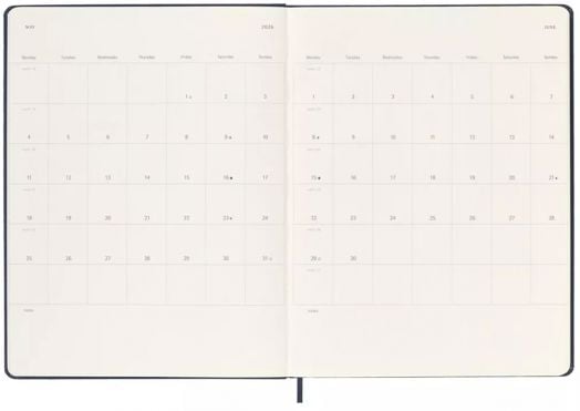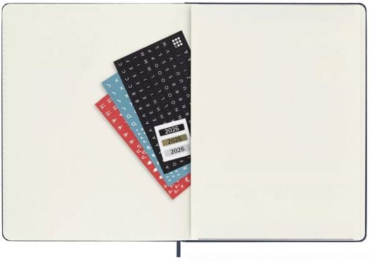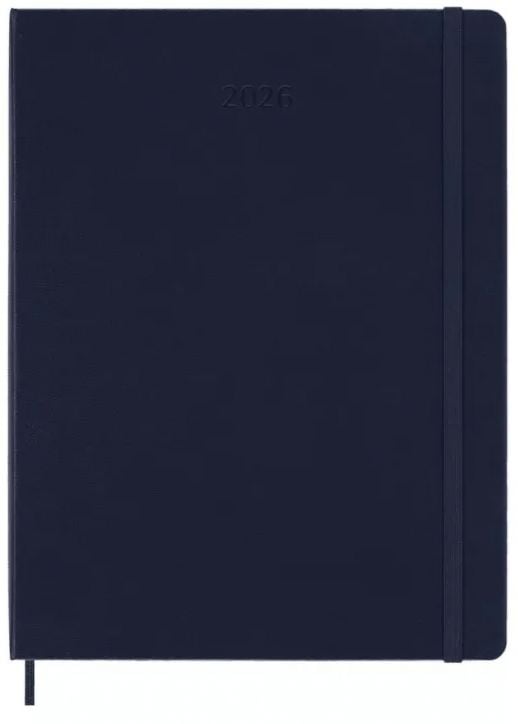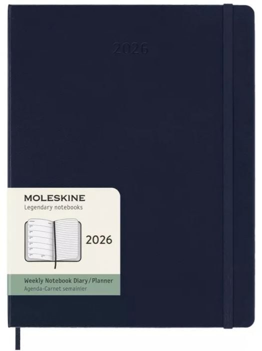 Голям син седмичен тефтер - органайзер Moleskine Sapphire Blue за 2026 година с твърди корици.