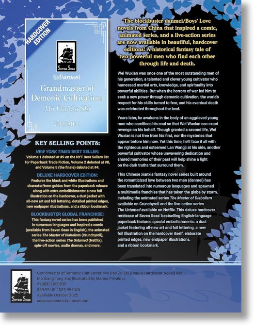 The New York Times bestselling novels that inspired the manhua/comic (also available from Seven Seas), animation, and the live-action series The Untamed will now be available to enjoy as beautiful collectors’ hardcovers!