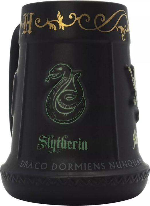 След пристигането си в Хогуортс, първокурсниците биват разпределени от Разпределителната шапка в една от четирите емблематични училищни къщи: Грифиндор, Слидерин, Рейвънклоу или Хафълпаф. Този избор се определя според техните способности и характера им. Открийте митичните емблеми на четирите къщи върху тази великолепна халба с релефен дизайн Harry Potter от ABYstyle!
