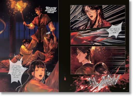 The first edition hardcover of Heaven Official’s Blessing (The Comic) will feature designed sprayed edges, custom endpapers, deluxe jacket, and a custom case stamp with gold foil!