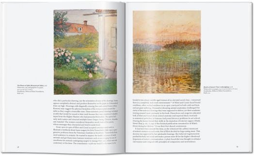 By 1906, her canvases featured radiant geometries of spirals and orbs, impregnated with symbols, letters, and words, anticipating the later embrace of abstraction by Kandinsky, Malevich, Mondrian, and others. Her vast painted cycles—like her works for the Temple and The Ten Largest—often depicted dualities: inside and out, the earthly and the esoteric, man and woman, good and evil.
