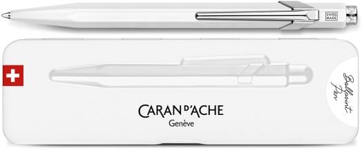 Автоматичната химикалка Caran d' Ache 849 Pop Line Collection е с бяло на цвят тяло и познатата и непроменена шестоъгълна форма.