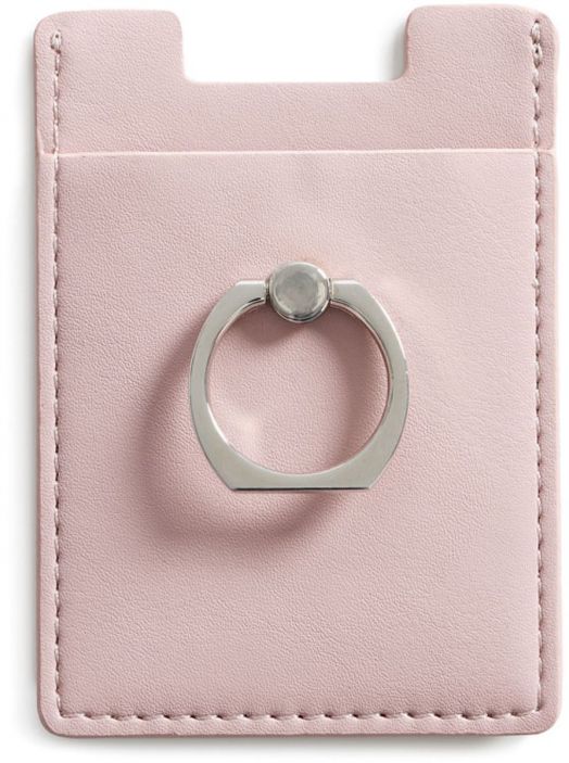 Розов калъф за карти, който може да бъде използван като холдър за телефона ви. Допълнителният ринг помага за лесно придържане на телефона. В джобчето на калъфа могат да бъдат поставени карти или документи. Лесно може да се залепи директно за телефон или кейс.